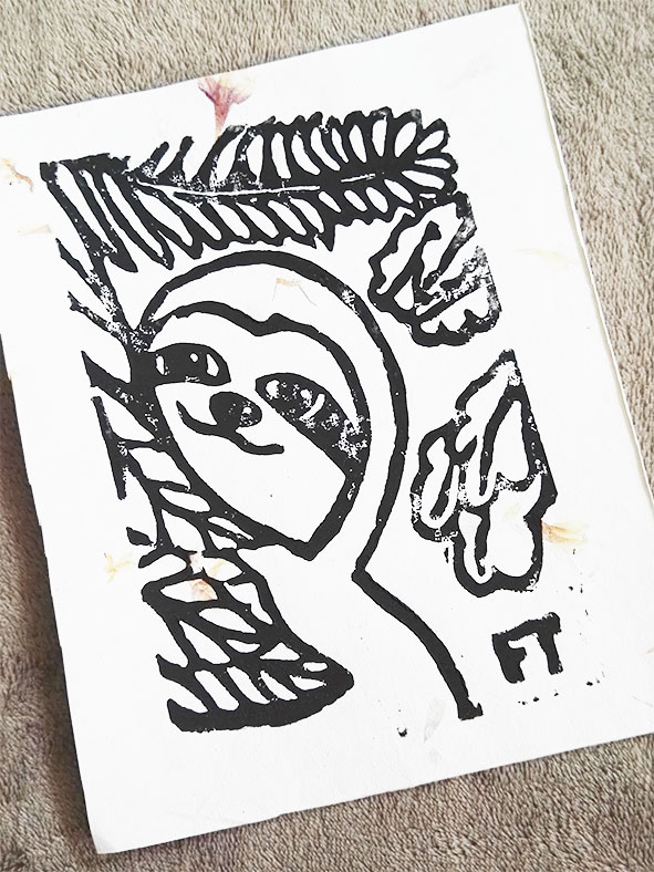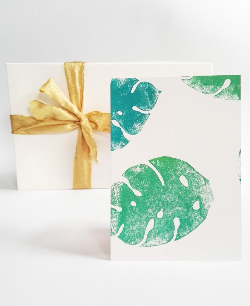 Du bist beim Drucken mit dem Linoldruck natürlich nicht auf Schwarz oder eine Farbe begrenzt. Probiere viele verschiedene Varianten aus.