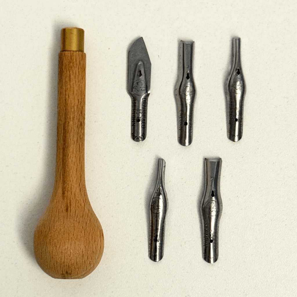 - Linolschnittbesteck (Flachausheber groß und klein, Riller, Geißfuß, Konturenmesser)